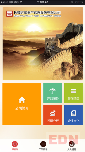 由我公司制作的北京長(zhǎng)城財(cái)富資產(chǎn)管理股份有限公司微網(wǎng)站正式上線;