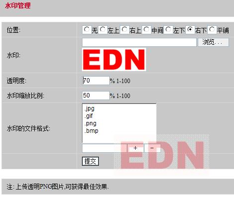 解決了原來水印大小的控制問題,水印大小可以做到取上傳圖片的大小成比例縮放,并在上傳圖片顯示縮略圖時(shí),也可成比例顯示水印效果。