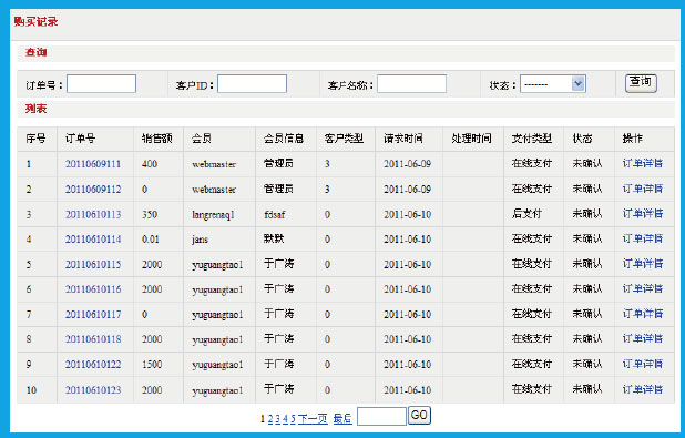 根據(jù)訂購日期和圖片名稱可進行查詢,顯示用戶訂購的RM圖片具體信息,可查看訂購會員的具體資料,無論是否具有該尺寸的圖片,支持郵件信息反饋。