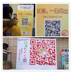 線下商家深圳海岸城、金錢豹全國連鎖店,將微信二維碼發(fā)布在自己的店門前。