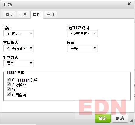 圖1常規(guī)選項(xiàng)中 url 可直接輸入視頻的地址, 視頻的寬高可自行定義;點(diǎn)擊上傳如圖2所示,選擇本地文件 上傳到服務(wù)器 如果不是所支持的格式,首先需要在本地轉(zhuǎn)成系統(tǒng)所支持的格式(flv,mp4,mov,f4v,3gp;); 視頻縮略圖是指 視頻還沒有播放靜止不動(dòng)的時(shí)候所顯示在視頻上面的圖片(可有可無),上傳圖片后把圖片地址復(fù)制到文本框即可;點(diǎn)擊屬性按鈕 如圖3; 介紹一下flash 變量 : 勾選啟用flash菜單,否則沒有;自動(dòng)播放:勾選后頁面加載完成即自動(dòng)播放,否則需要點(diǎn)擊播放按鈕;循環(huán):勾選后播放完一遍后重復(fù)播放,否則播放一遍就停止;啟用全屏:勾選后可以全屏觀看,否則無法全屏