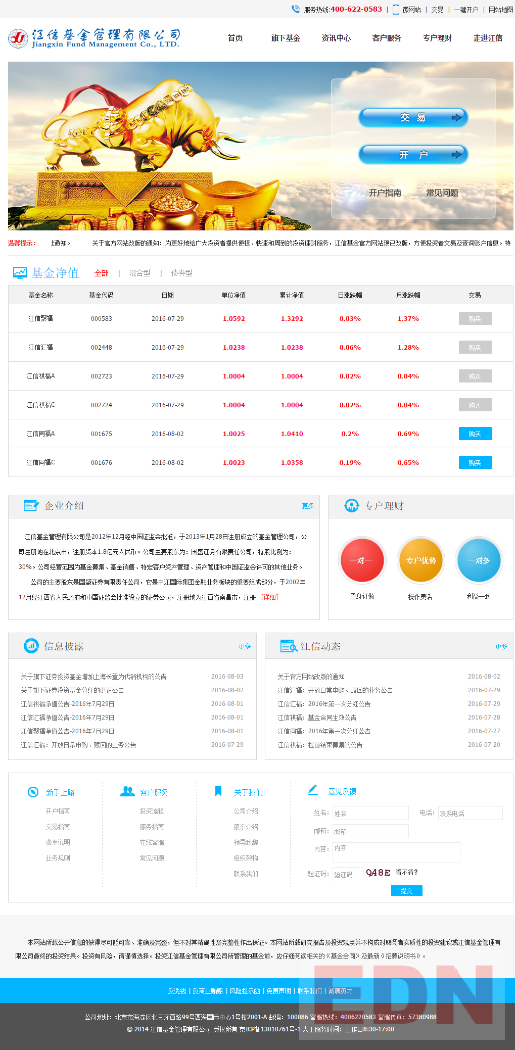由我公司制作的江信基金管理有限公司網(wǎng)站正式上線;