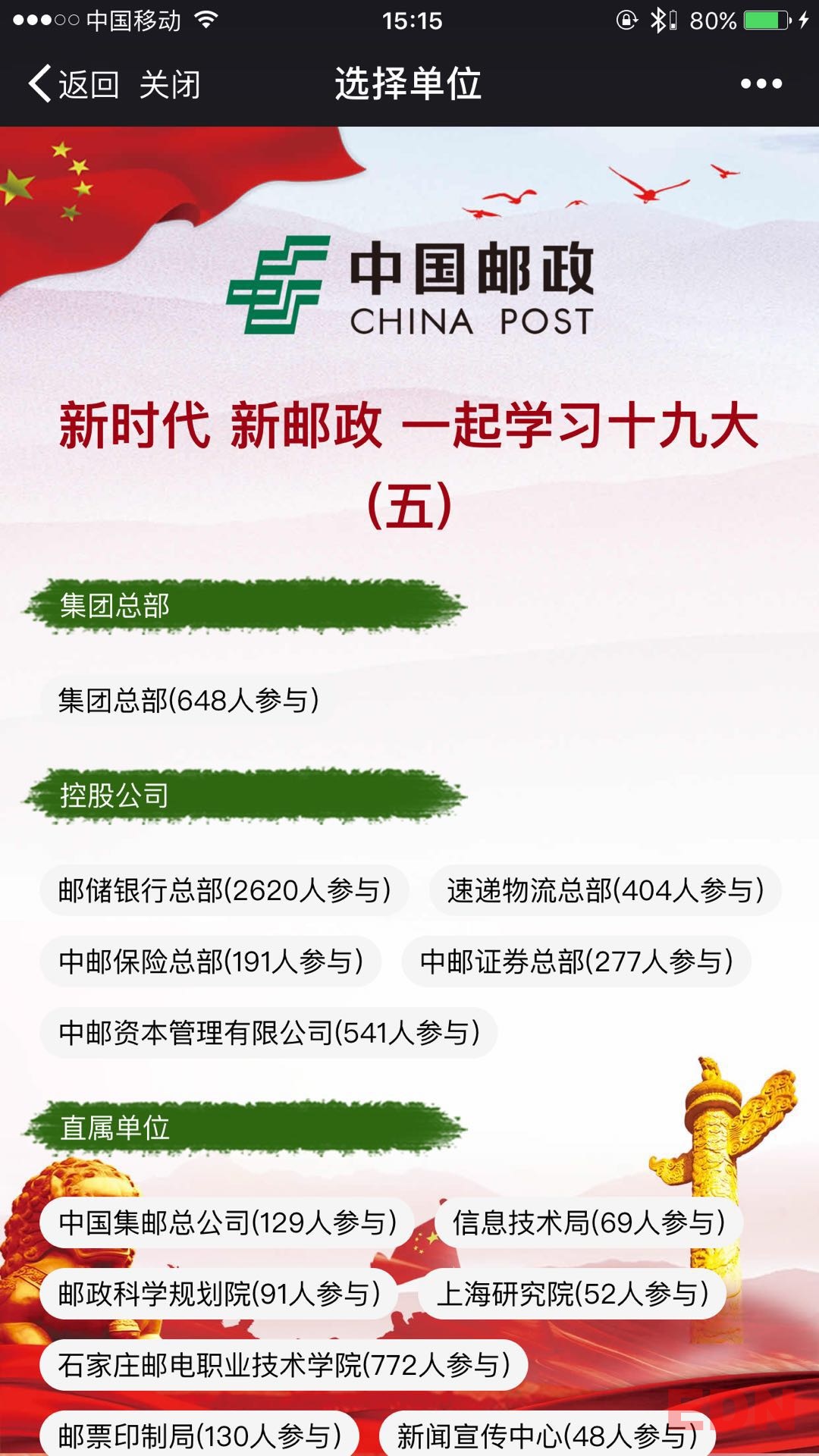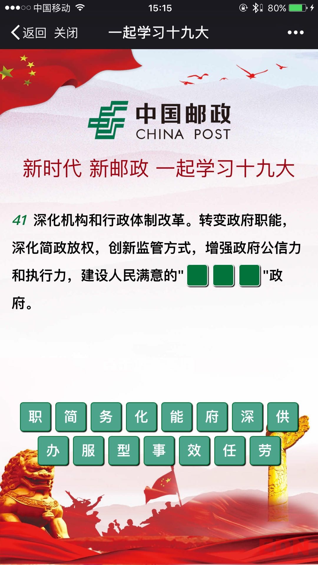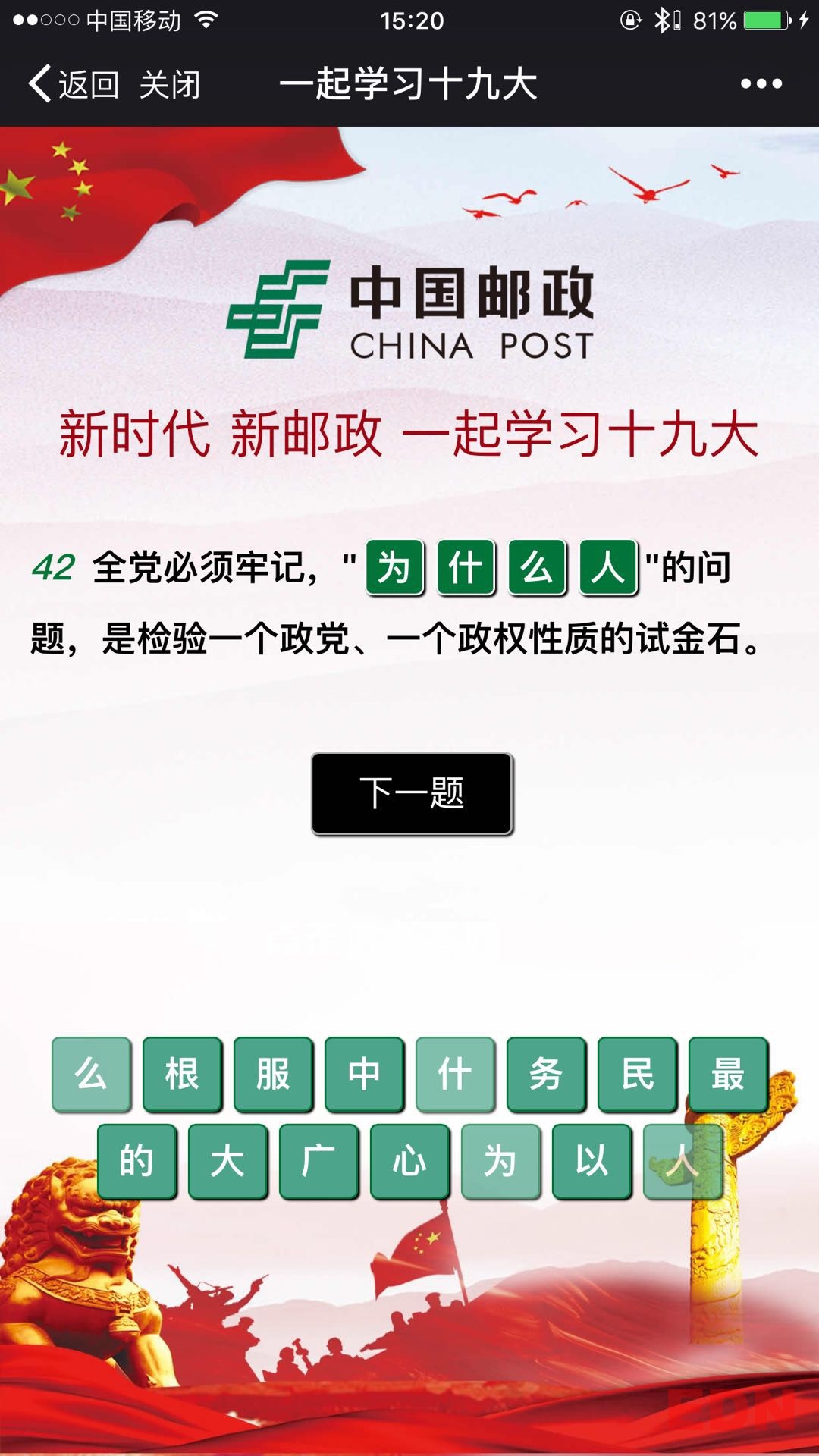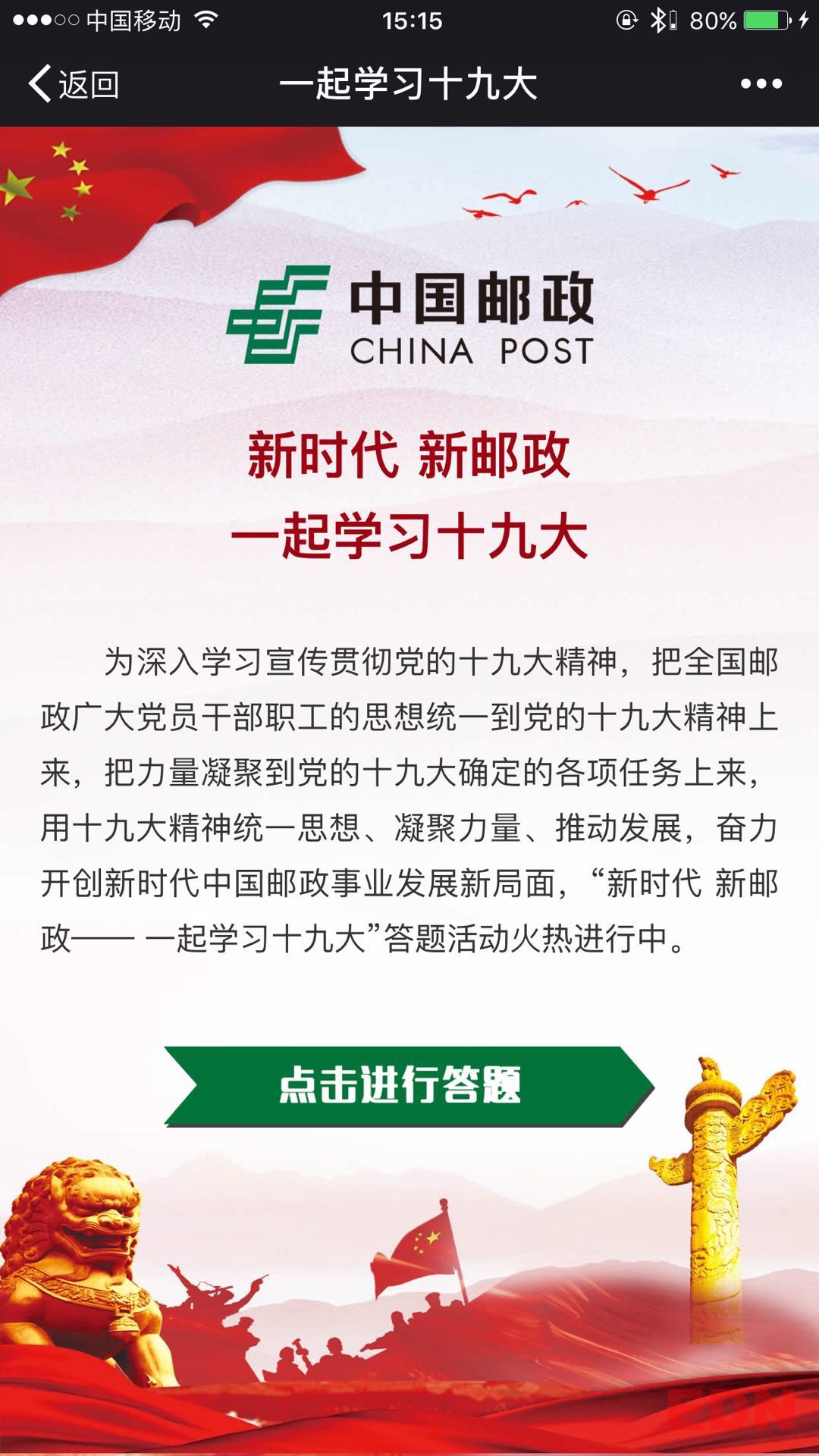 - 由我公司制作開(kāi)發(fā)新時(shí)代 新郵政 一起學(xué)習(xí)十九大答題活動(dòng)火熱進(jìn)行中!