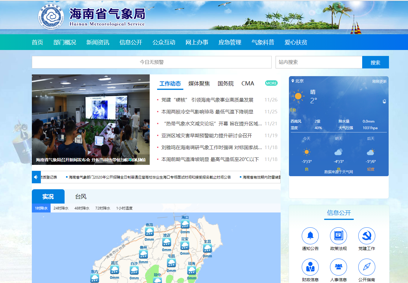 近期由本公司設計搭建制作的海南省氣象局網站正式上線