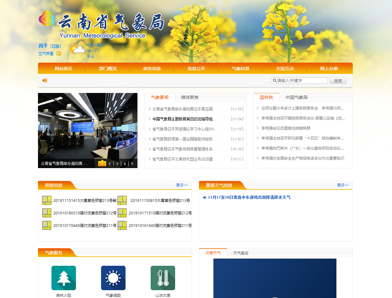近期由本公司設(shè)計搭建制作的云南省氣象局網(wǎng)站正式上線