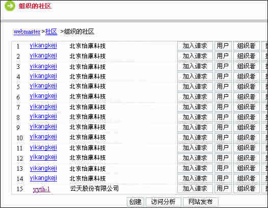 進(jìn)入“組織的社區(qū)”頁(yè)面,可以看到網(wǎng)站所有社區(qū)的列表。這些已有社區(qū),都可以設(shè)置為模板。