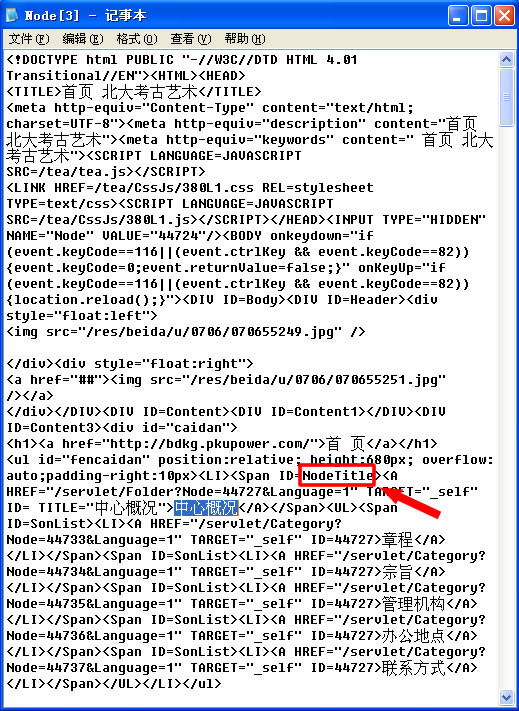 比如按我們創(chuàng)建的中心概況的目錄列舉,我們要查找中心概況這個(gè)被我們列出的節(jié)點(diǎn)標(biāo)題的ID,我們按ctrl+f或點(diǎn)編輯、查找輸入中心概況。即可找到中心概況這個(gè)詞,因?yàn)橹行母艣r是個(gè)鏈接,所以A之前的那個(gè)ID就是這個(gè)節(jié)點(diǎn)標(biāo)題的ID,如下圖: