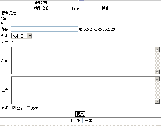 順序是屬性的顯示順序。之前填寫的文本框之前的代碼,之后填寫的屬性文本框之后的代碼