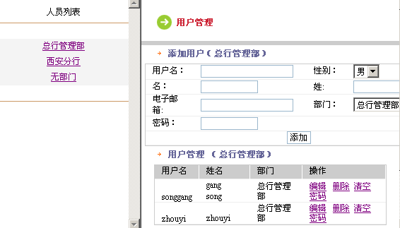如果要編輯某一用戶,點(diǎn)擊該用戶后面的編輯,便可以重新修改該用戶資料了;點(diǎn)擊刪除將會(huì)刪除該用戶;點(diǎn)擊清空密碼,該用戶密碼將會(huì)被清除,用戶便可以重新設(shè)定密碼了。