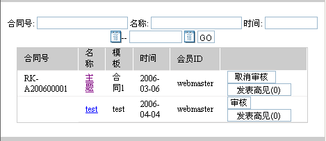 輸入合同號(hào)、名稱或者時(shí)間中任意,點(diǎn)擊GO按鈕便可以方便找到滿足條件的合同了。