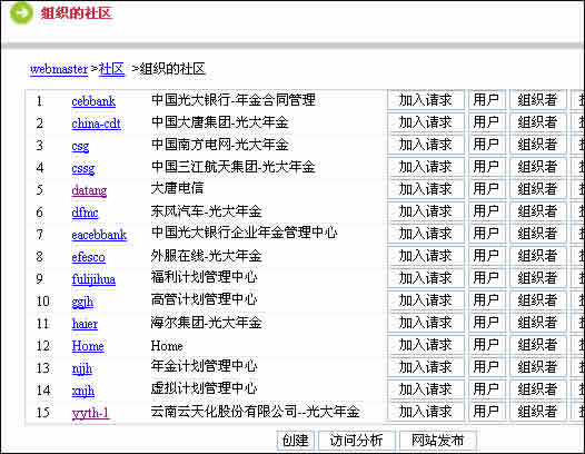 進(jìn)入“組織的社區(qū)”頁(yè)面,可以看到網(wǎng)站所有社區(qū)的列表。這些已有社區(qū),都可以設(shè)置為模板。
