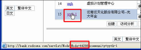 新社區(qū)的登陸鏈接地址要做改動(dòng)。如果不做改動(dòng),“登錄”按鈕所指向的仍是“云天化”模板所指向的頁(yè)面。我們?cè)?.2節(jié)中記錄的兩個(gè)節(jié)點(diǎn)號(hào)在這里就要派上用場(chǎng)了。