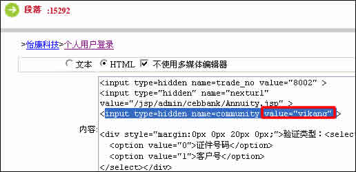 重新進(jìn)入主頁(yè)的“子節(jié)點(diǎn)”,進(jìn)入“子節(jié)點(diǎn)”頁(yè)面,以同樣方式記下“個(gè)人用戶登錄”的節(jié)點(diǎn)號(hào)“44347”,再進(jìn)入“段落”頁(yè)面,修改“個(gè)人用戶登錄”的位置。