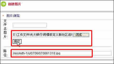 進(jìn)入編輯頁(yè)面。點(diǎn) “圖片瀏覽”,進(jìn)入“創(chuàng)建圖片”頁(yè)面。點(diǎn)“瀏覽”,把需要上傳的圖片瀏覽進(jìn)去。然后 “提交”。