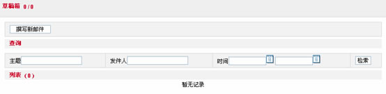 點擊“收信箱”,進入“收信箱消息”頁面。該頁面由“功能按鈕”和 “郵件列表”兩部分組成,下面分別介紹。整個頁面樣式如下圖所示: