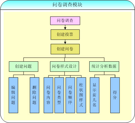 1、增加新的調(diào)查題目。2、設(shè)定每個調(diào)查問題的屬性,包括: 是否自填答案、是否需要多行填寫、此問題是否允許。3、用戶多選、查看調(diào)查結(jié)果時是否需要匯總、用戶在填寫調(diào)查表時是否必答。4、可設(shè)置調(diào)查表的表頭、及背景圖片或顏色等信息。5、可以查詢、統(tǒng)計(jì)調(diào)查結(jié)果,可以刪除廢棄的調(diào)查表,節(jié)省可用的空間。6、投票選項(xiàng)可以是文字性的敘述也可以是圖片的方式。