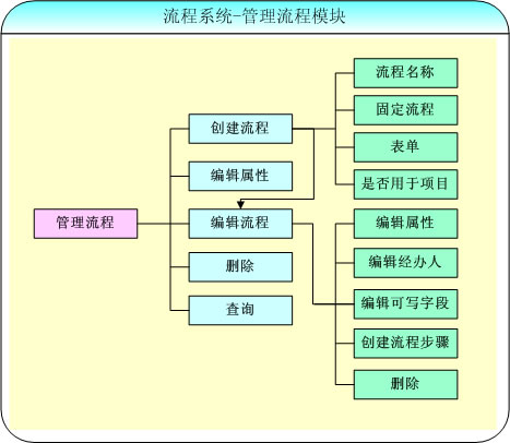 流程是工作流的核心,一切工作都是圍繞著流程來進(jìn)行。流程系統(tǒng)-管理流程模塊可以實(shí)現(xiàn)創(chuàng)建流程(包括新建流程步驟、經(jīng)辦人、編輯可寫字段等部分)、編輯流程、查詢流程等功能。