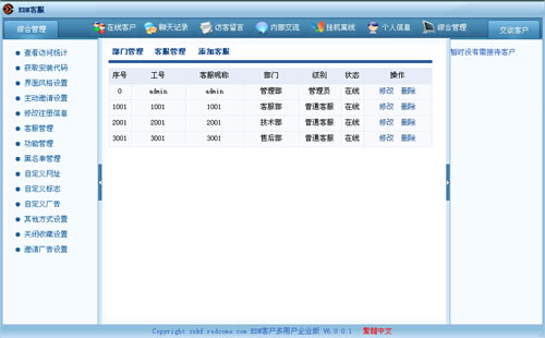 多席位管理:無限客服工號,支持多人同時在線,系統(tǒng)根據(jù)線路繁忙程度自動分配工號。