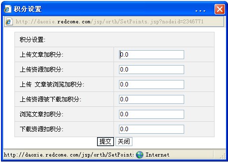 積分設(shè)置:針對于已稿件給會員的加、減積分設(shè)置。彈出窗口進(jìn)行積分設(shè)置,如下圖所示: