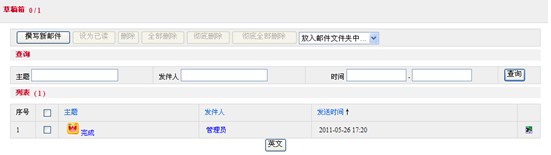 點(diǎn)擊“草稿箱”,進(jìn)入“消息”頁(yè)面。該頁(yè)面由“草稿消息列表“和”創(chuàng)建信件”兩部分組成。“草稿消息列表”列出的是寫(xiě)好但是沒(méi)有發(fā)送的郵件,點(diǎn)擊“主題”可以進(jìn)入詳細(xì)內(nèi)容頁(yè)面。該頁(yè)面如下圖所示:
