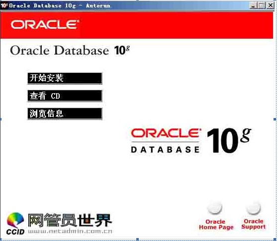 首先將ORACLE 10g的安裝光盤放入光驅(qū),如果自動運行,一般會出現(xiàn)如圖1安裝界面: