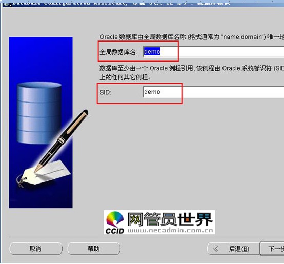 ![]() 圖5 全局數(shù)據(jù)庫名,格式一般為:db_name.db_domain。db_name用于對應(yīng)數(shù)據(jù)庫名,db_domain對應(yīng)于網(wǎng)絡(luò)域名。SID(例程)應(yīng)該與db_name完全一致.如圖5都設(shè)置為:demo.