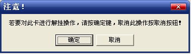 點(diǎn)擊“確定”按鈕即可將此卡解掛,恢復(fù)正常使用,點(diǎn)擊“取消”按鈕則取消本次操作,操作完畢后點(diǎn)擊“返回”按鈕退出。