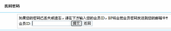 找回密碼:會員忘記密碼時可點擊找回密碼,進入如下頁面,系統(tǒng)回把會員最后一次修改后的密碼發(fā)送至注冊郵箱中如下圖