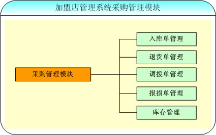 加盟店管理系統(tǒng)的采購管理模塊作為總部進銷存功能中一部分,主要用來對商品入庫的情況進行相關(guān)操作,包括了入庫單管理、退貨管理、調(diào)撥管理以及對庫存的管理等部分,該模塊是加盟店管理系統(tǒng)中一個重要的組成部分。